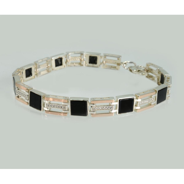 Чоловічий срібний браслет з золотими пластинами та оніксом