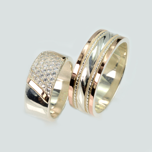 Теги: Пара срібних обручок з золотом, Обр33Обр42, Silverstyles, Обручки