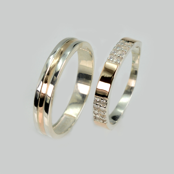 Пара срібних обручок з золотом