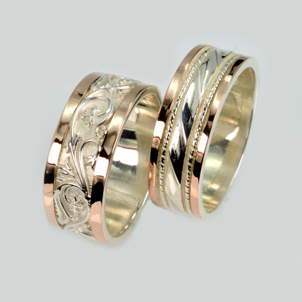 Пара срібних обручок з золотом