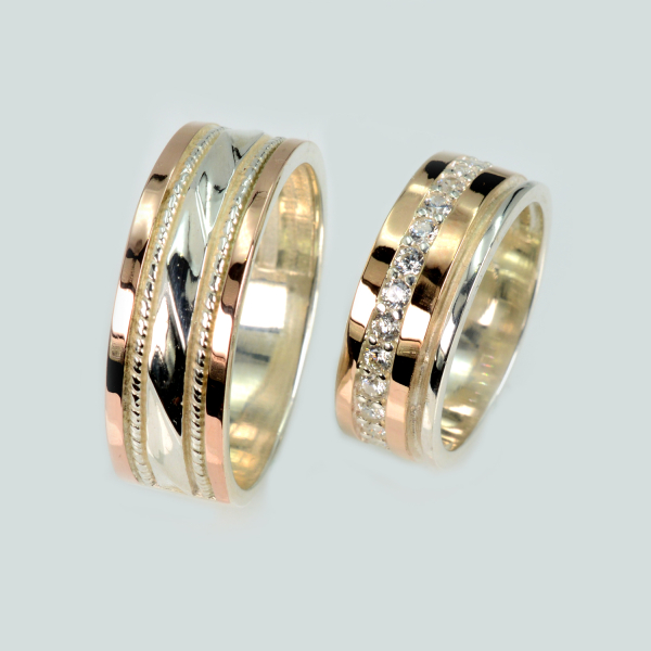 Пара срібних обручок з золотом