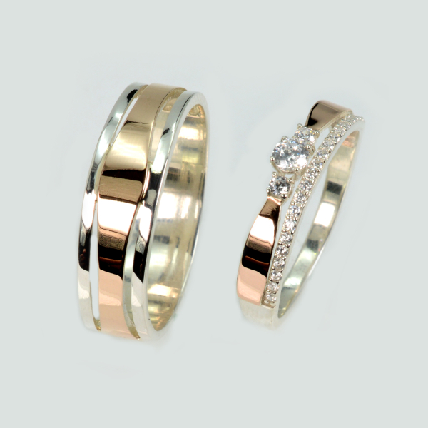 Пара срібних обручок з пластинами золота