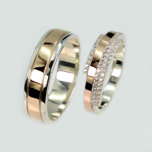 Пара срібних обручок з пластинами золота