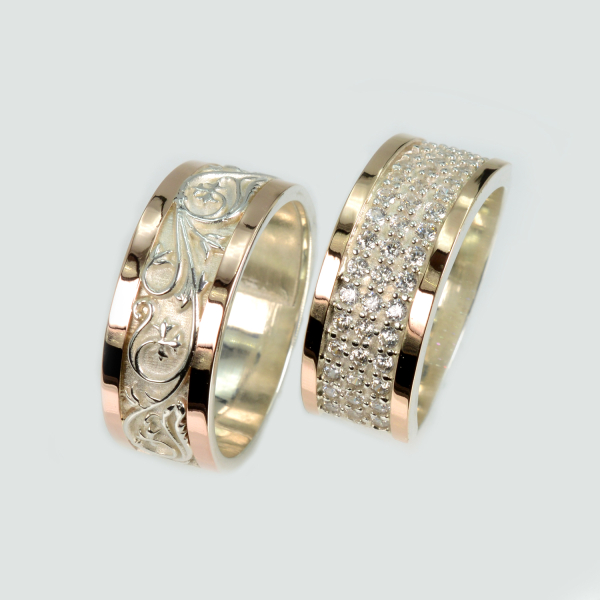 Пара срібних обручок з золотом
