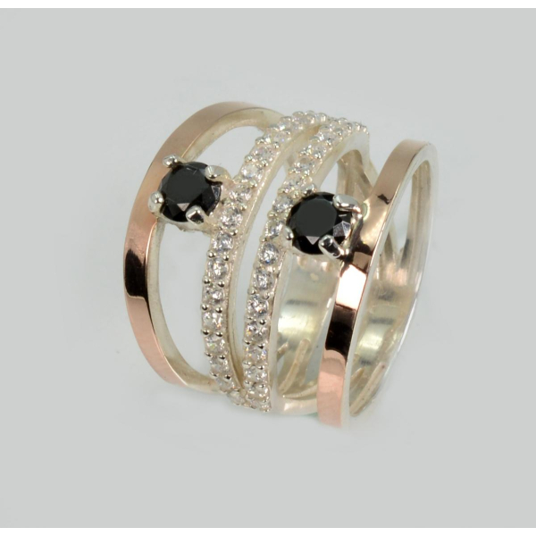Срібна каблучка з золотими вставками
