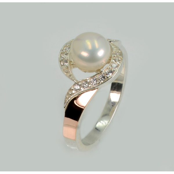 Срібна каблучка з золотоми вставками та перлиною
