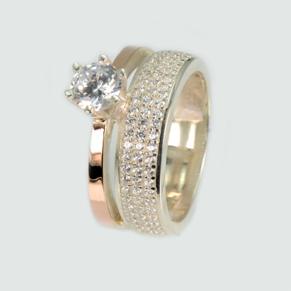 Срібна каблучка з золотими вставками