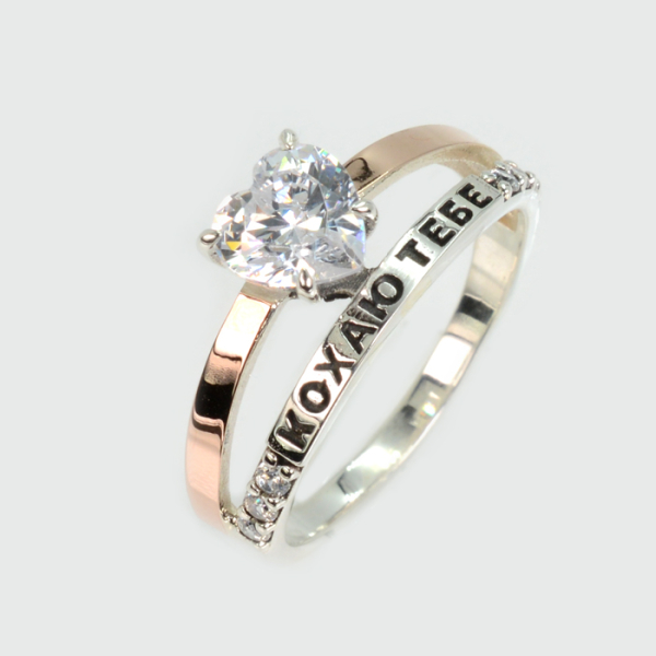 Срібна каблучка з золотими вставками "Кохаю тебе"