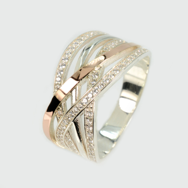 Срібна каблучка з золотими вставками