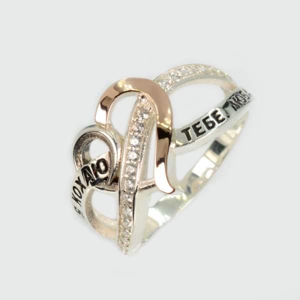 Срібна каблучка з золотими вставками "Я кохаю тебе люба"