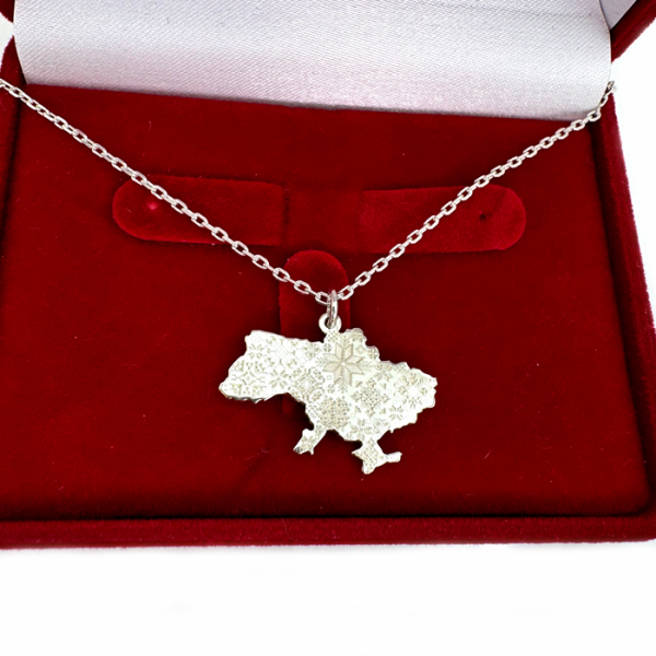 Срібна підвіска на ланцюжку "Карта України"