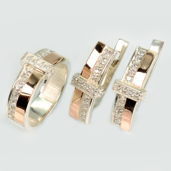 Срібний комплект з золотими вставками і фіанітами