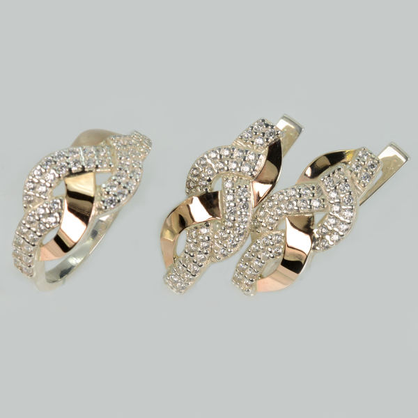 Теги: Срібний набір з золотими напайками і фіанітами, 086, Silverstyles, Гарнітури