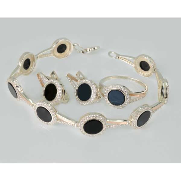 Срібний набір(браслет, сережки,каблучка) з оніксом