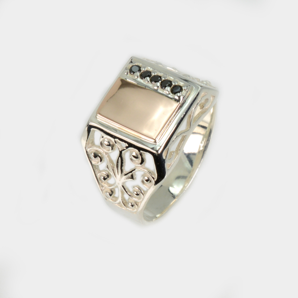 Срібний перстень з напайками із золота (Мп6) – це елегантний ювелірний виріб, з особливою увагою виконаний кращими фахівцями фабрики SilverStyle. Надійний виробник ювелірних прикрас з бездоганною репутацією. Якщо вас цікавлять Чоловічі печатки, неодмінно завітайте до нашого розділу "Чоловічі печатки", де на вас чекає великий вибір та доступні ціни. Обирайте свій ідеальний вибір вже сьогодні!
