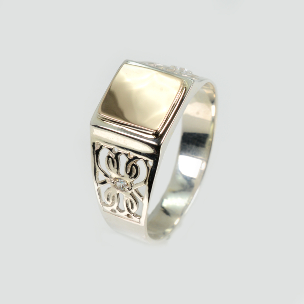 Срібний перстень з золотими накладками (Мп5) – це витончений ювелірний виріб, з любов'ю виконаний золотою командою фабрики SilverStyle. Фабрика з великим досвідом виготовлення ювелірних виробів на ринку України. Якщо вас цікавлять Чоловічі печатки, неодмінно завітайте до нашого розділу "Чоловічі печатки", де на вас чекає вражаючий вибір та кращі ціни. Обирайте свій ідеальний вибір вже сьогодні!