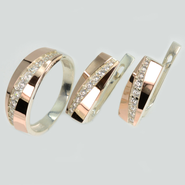 Срібний набір з золотими пластинами