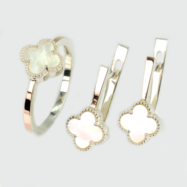Срібний набір з конюшиною та золотими пластинами