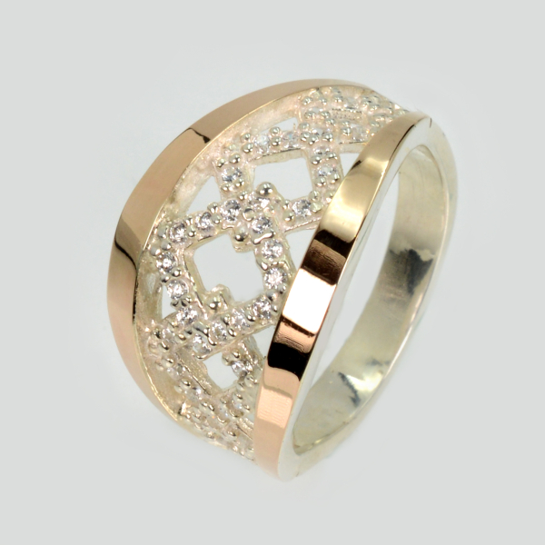 Кольцо серебро с золотом, 087к, Silverstyles, Кольца