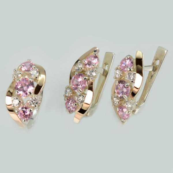 Комплект серебряный с золотыми вставками(пластинами), 085, Silverstyles, Гарнитуры
