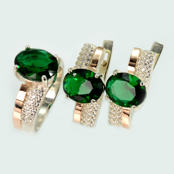 Набор серебряный с золотыми пластинами и фианитами