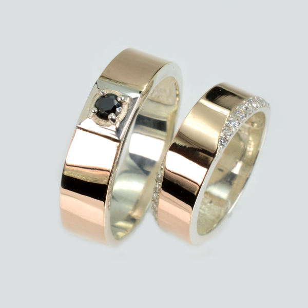 Пара обручальных колец из серебра с золотом