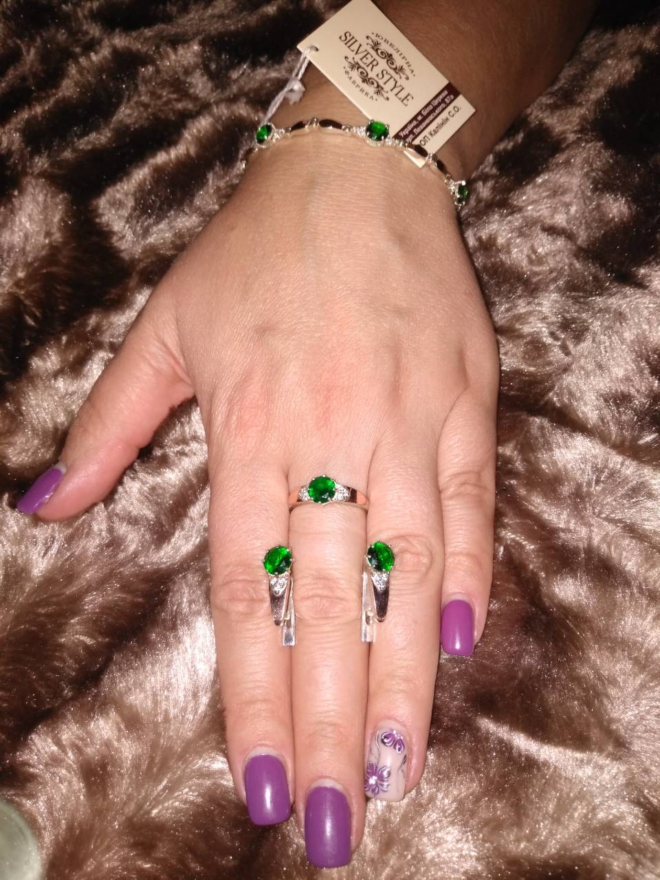 Хочу выразить огромную благодарность за шикарный набор. Муж заказал мне серьги и кольцо на ДР, а потом через пол года порадовал браслетиком к наборчику. Теперь мои зеленые камешки сверкают на мне и дарят хорошее настроение. Процветания вам и новых идей для удовлетворения всех женских желаний.